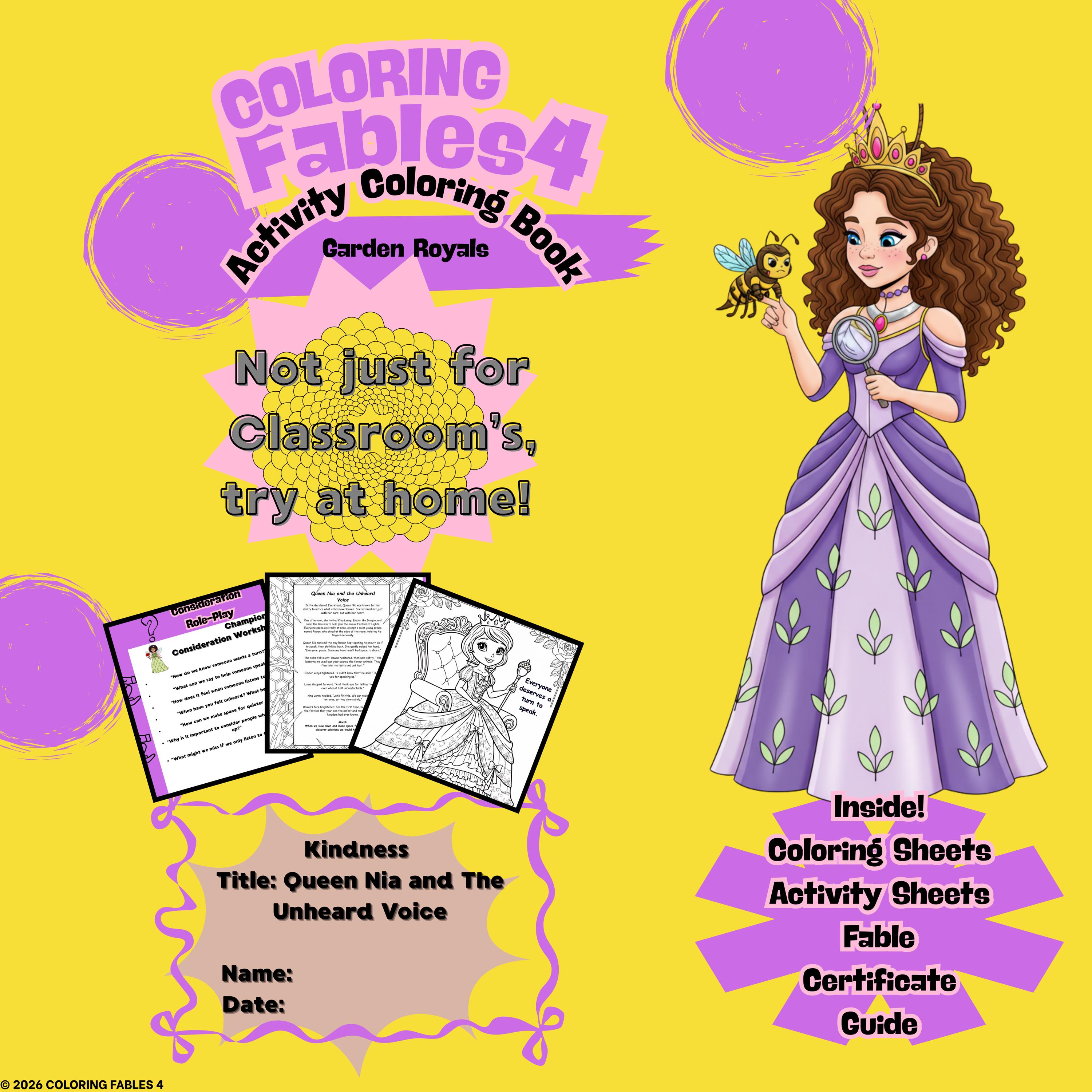 Coloring Fables 4 stories and activities are designed to be warm, imaginative, and supportive learning tools for children. However, every child and family is unique. Some readers may interpret themes, characters, or lessons differently based on age, background, or personal experiences.