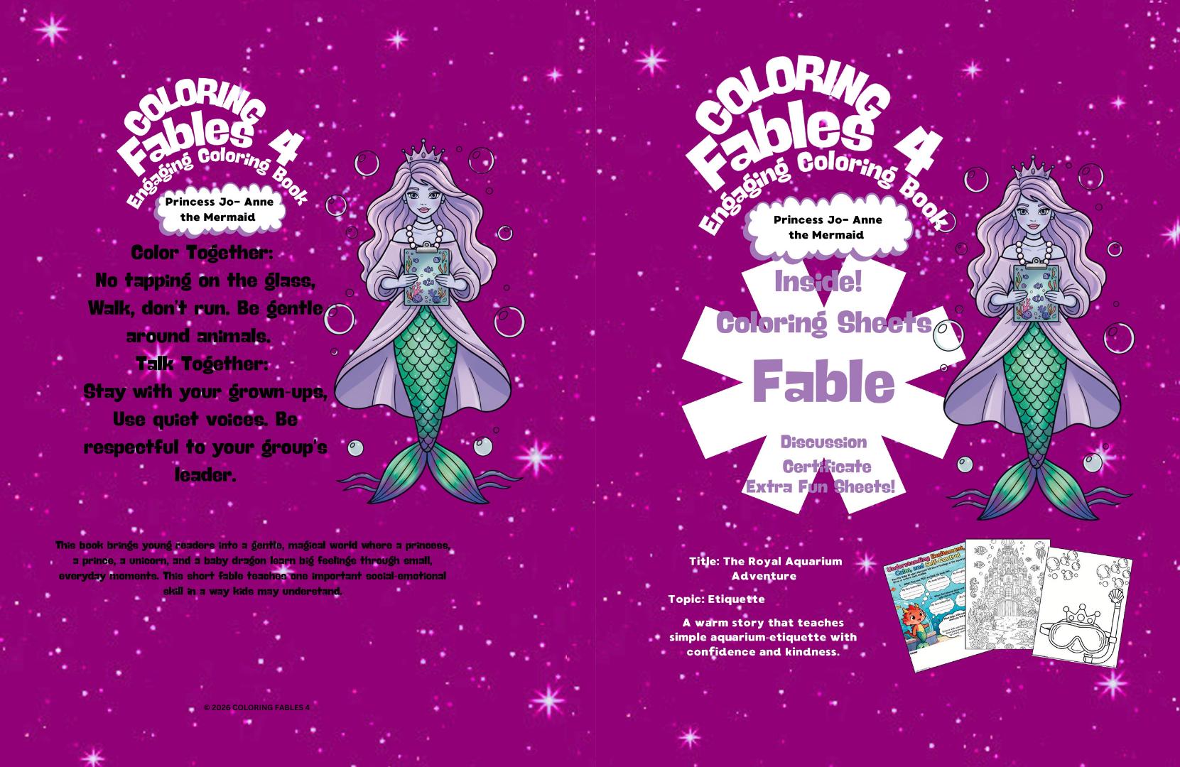 Coloring Fables 4 stories and activities are designed to be warm, imaginative, and supportive learning tools for children. However, every child and family is unique. Some readers may interpret themes, characters, or lessons differently based on age, background, or personal experiences.