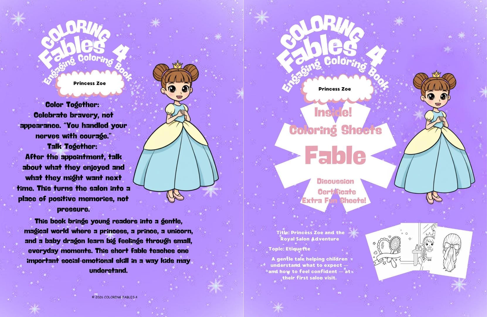 Coloring Fables 4 stories and activities are designed to be warm, imaginative, and supportive learning tools for children. However, every child and family is unique. Some readers may interpret themes, characters, or lessons differently based on age, background, or personal experiences.
